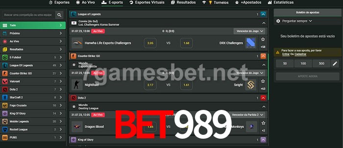 A aposta Bet989 oferece aos jogadores a experiência mais conveniente de apostas em eSports!